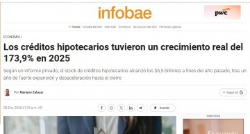 Los créditos hipotecarios tuvieron un crecimiento real del 173,9% en 2025