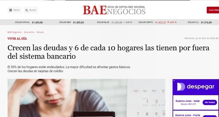 El endeudamiento informal alcanzó a seis de cada diez familias en Argentina frente a la imposibilidad de pagar los servicios básicos. Actualmente, las familias acumulan más de $39 billones de deuda total, $32,1 billones corresponden a créditos bancarios y $6,9 billones a deudas no bancarias.